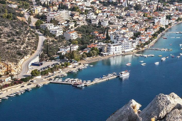 Το ανοιχτό δημόσιο παρκινγκ κοντά στο λιμάνι εξυπηρετεί αρκετούς από τους επισκέπτες του χωριού.
